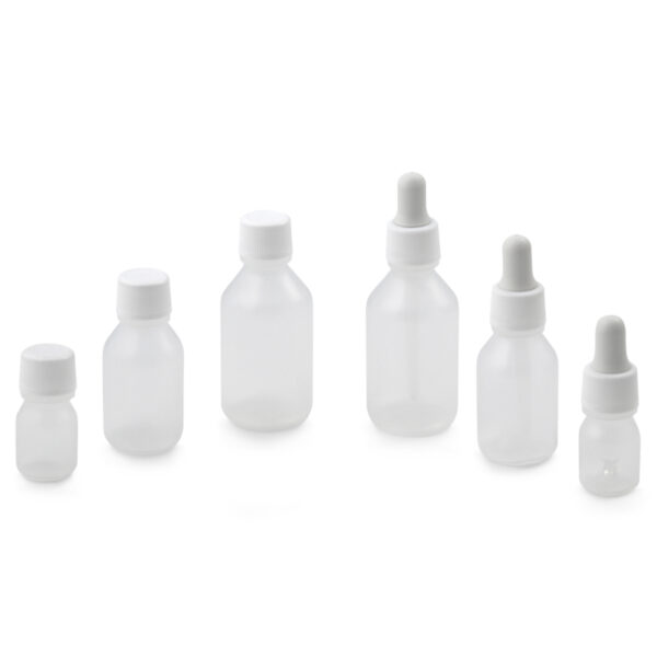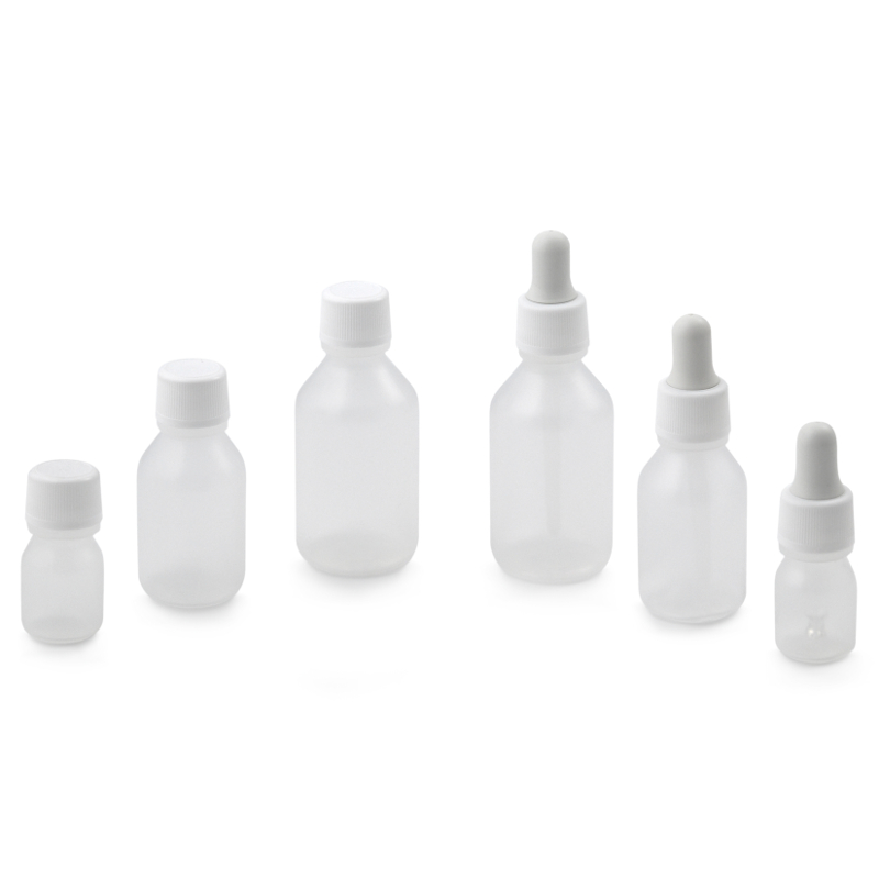 Para los modelos con tapón cuentagotas: el de 10 ml tiene la varilla de vidrio y los de 30 ml y 60 ml, de plástico.