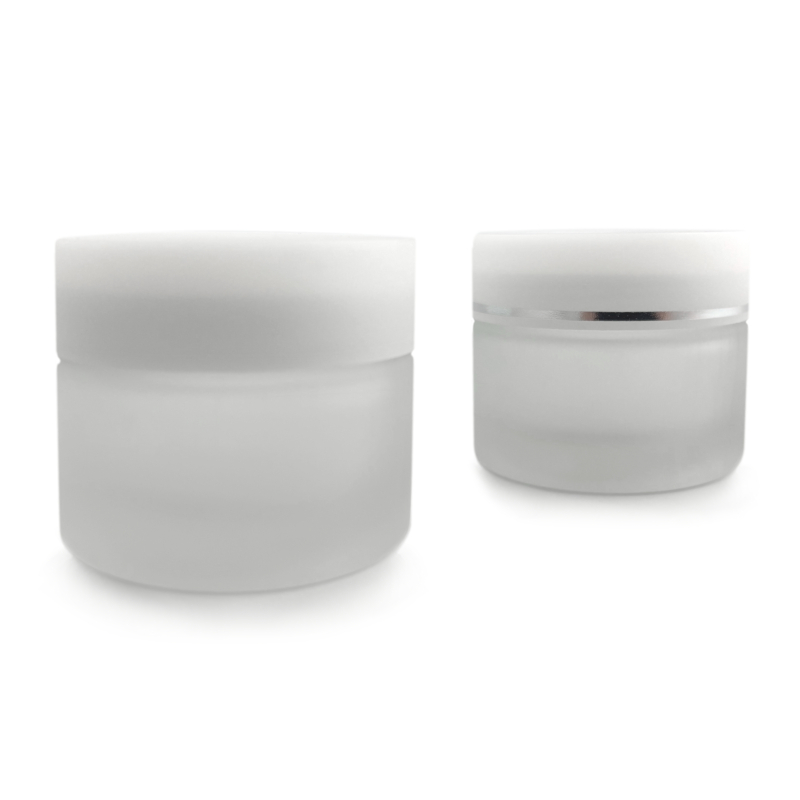 TARRO DE CRISTAL MATIZADO 50 ml TAPA PLANA BLANCA TRANSLÚCIDA
